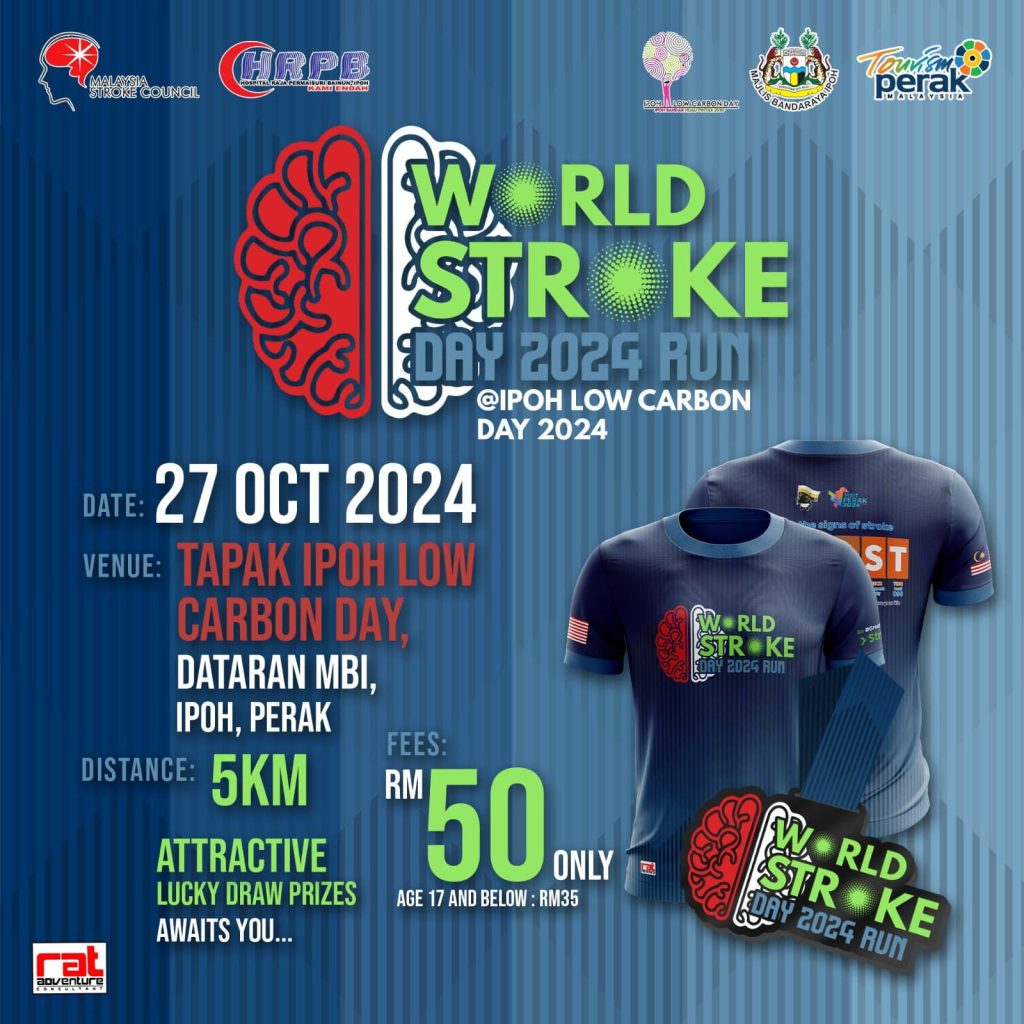 Jom sertai satu acara larian sempena World Stroke Day 2024 yang akan berlangsung pada 27 Oktober 2024 di Tapak Ipoh Low Carbon Day, Dataran MBI Perak. Jom kita amalkan gaya hidup sihat, pelbagai hadiah menarik menanti anda tau!